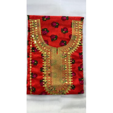 قماش قطن مطرز بالتلي والطرابيش الملونة ..