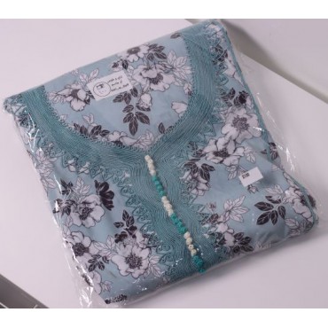 قماش قطن بيج مشجر مطرز بالتلي الكحلي و الأزرق الفاتح ..